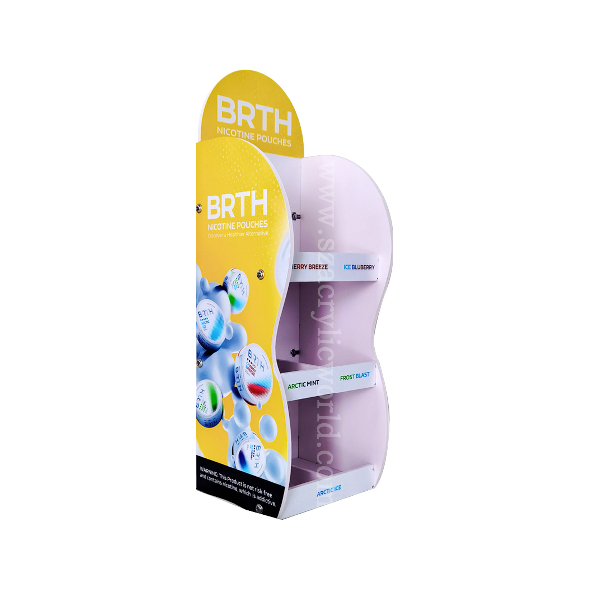 Ourmuraayadaha nikotiinka acrylicwaa xalal badan oo lagu hagaajin karo baahiyahaaga gaarka ah. Haddii aad u baahan tahay abandhiga countertopama bandhig weyn oo loogu talagalay aagga gaarka ah ee dukaankaaga, waan awoodnaasamee bandhigtaas oo ku habboon baahiyahaaga. Acrylic waa mid waara oo fududahay in la nadiifiyo, iyadoo la hubinayo in muuqaalkaagu uu ku sii jiro xaalad saafi ah.
